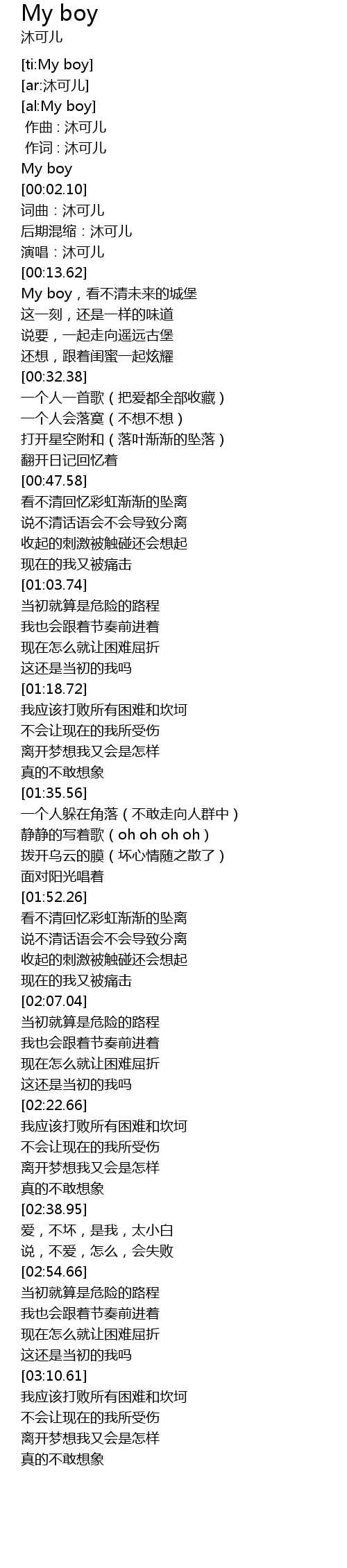 | [00:04.28] | 词曲:沐可儿 |