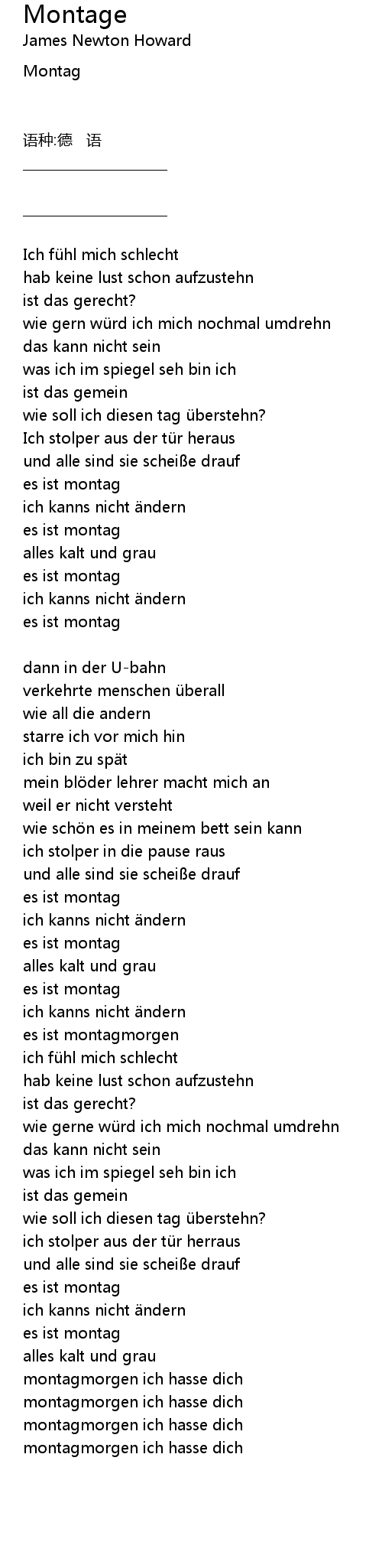 | montagmorgen ich hasse dich | |