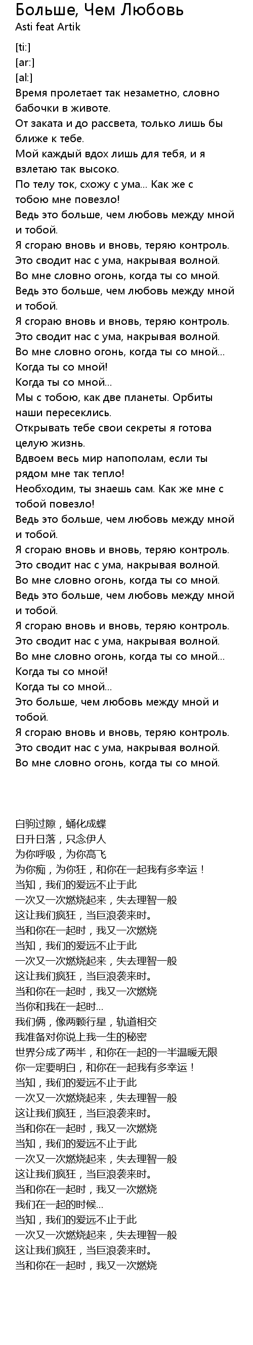 | [00:41.47] | Во мне словно огонь, когда ты со мной. |