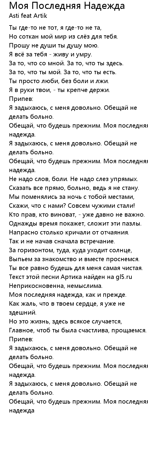 Текст этой песни Артика найден на gl5.ru |