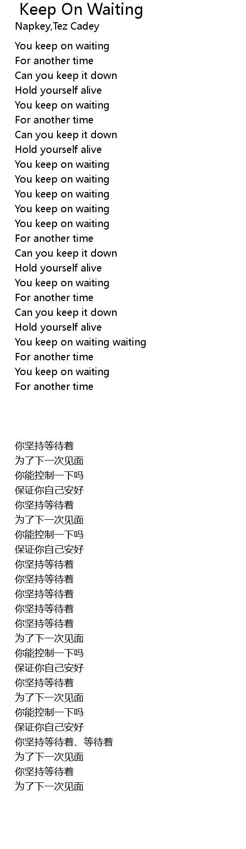 | [03:21.57] | You keep on waiting waiting |