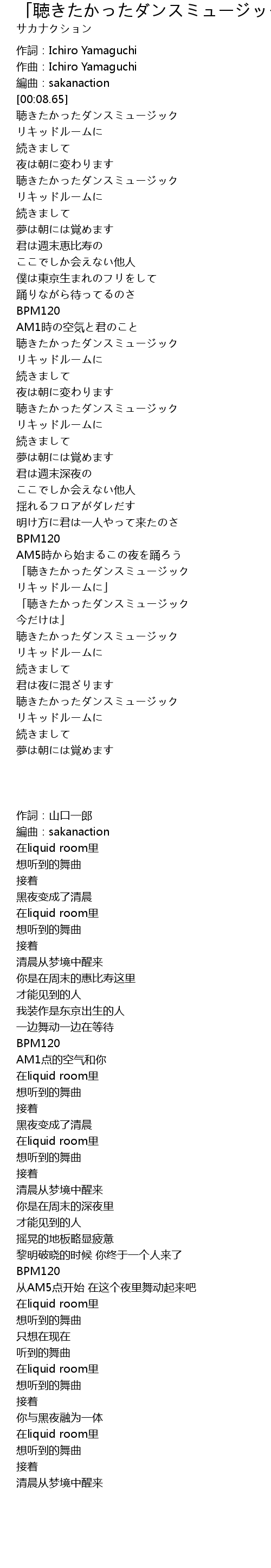 | [03:15.62] | 聴きたかったダンスミュージック |