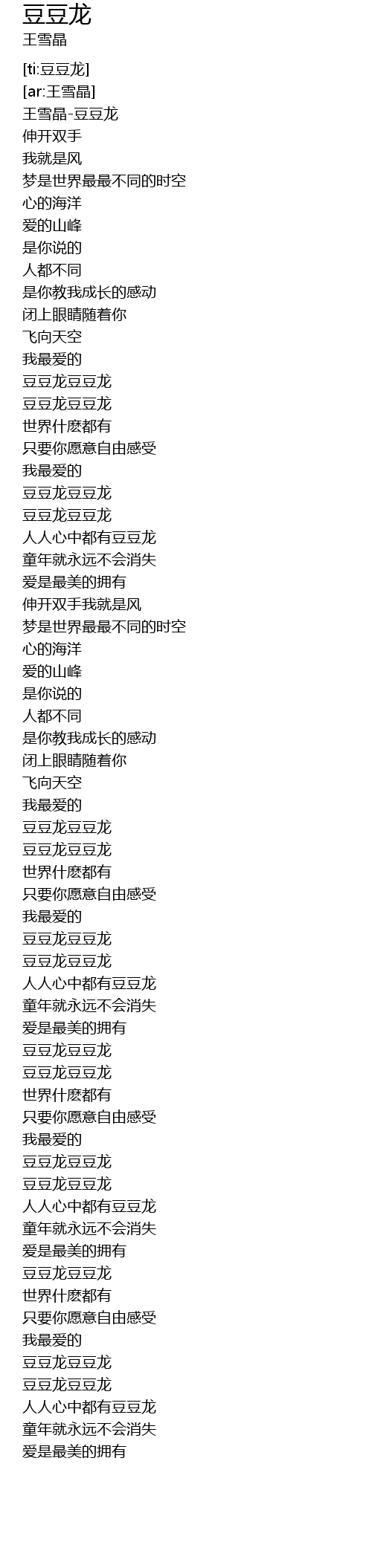 | [00:00.455] | 王雪晶-豆豆龙 |