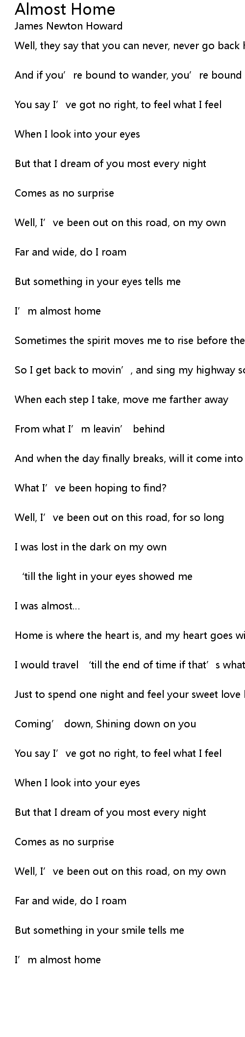 | 歌曲 | Almost Home |