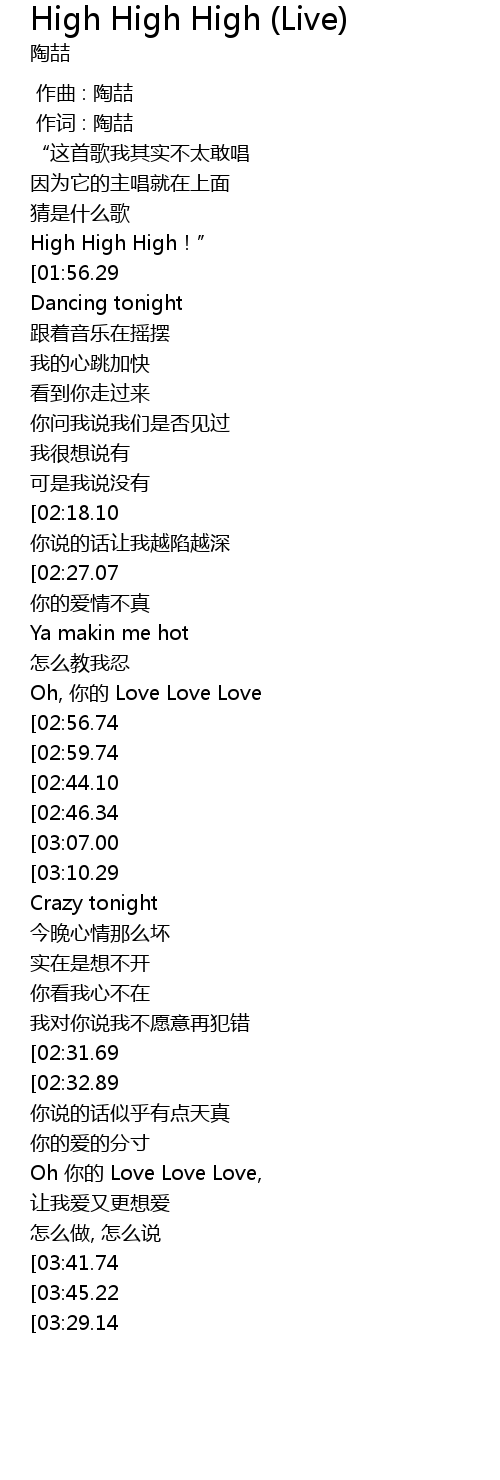 | [01:34.35] | Oh, nǐ de Love Love Love |