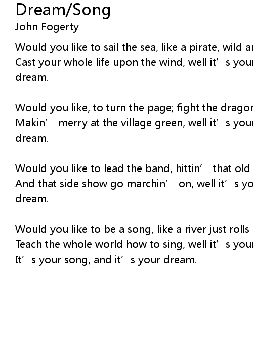 | It' s your song, and it' s your dream. |