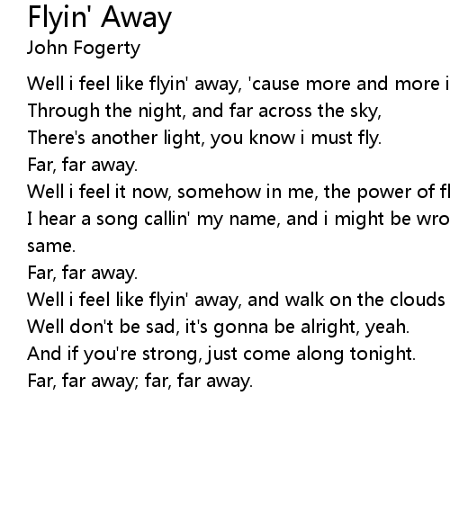 Well i feel like flyin' away, 'cause more and more i'm just in the way, yeah. |