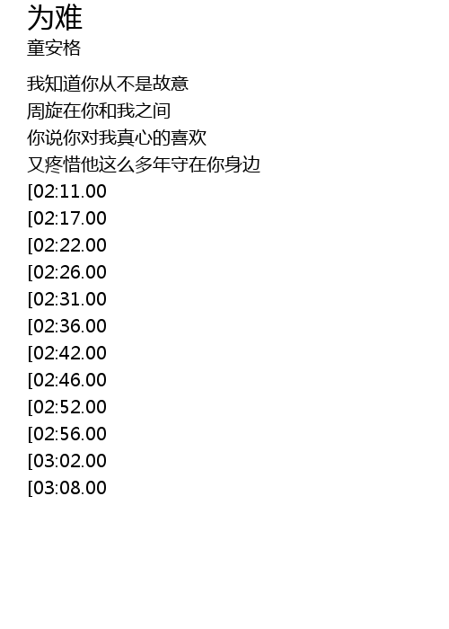 | [01:09.00][02:31.00][03:18.00] | 我不想再让你为难 |