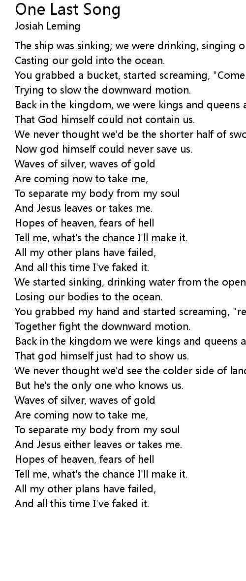 The ship was sinking; we were drinking, singing one last song, |