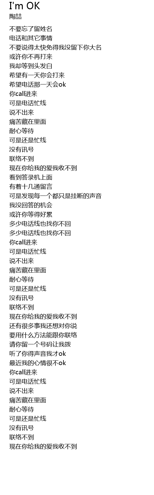 | [02:10.000] | 可是发现每一个都只是挂断的声音 |