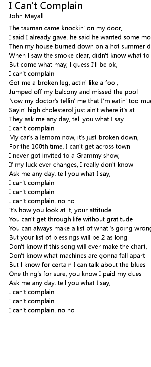 I can't complain |