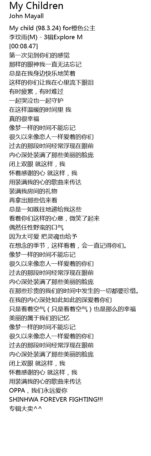 | 歌曲 | My Children |