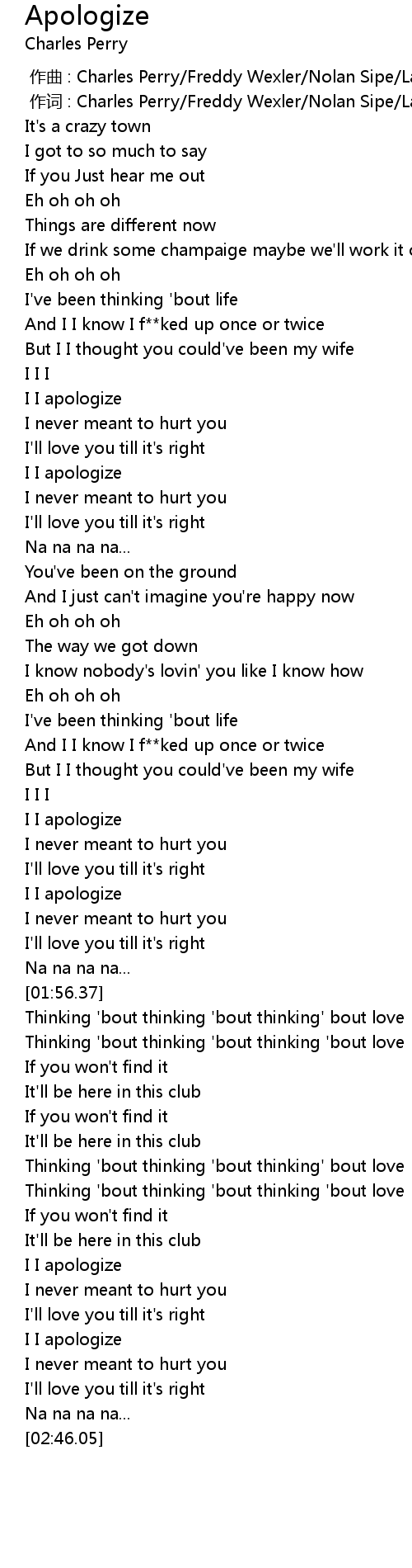 | [00:01.00] | 作词 : Charles Perry/Freddy Wexler/Nolan Sipe/Laura Raia |