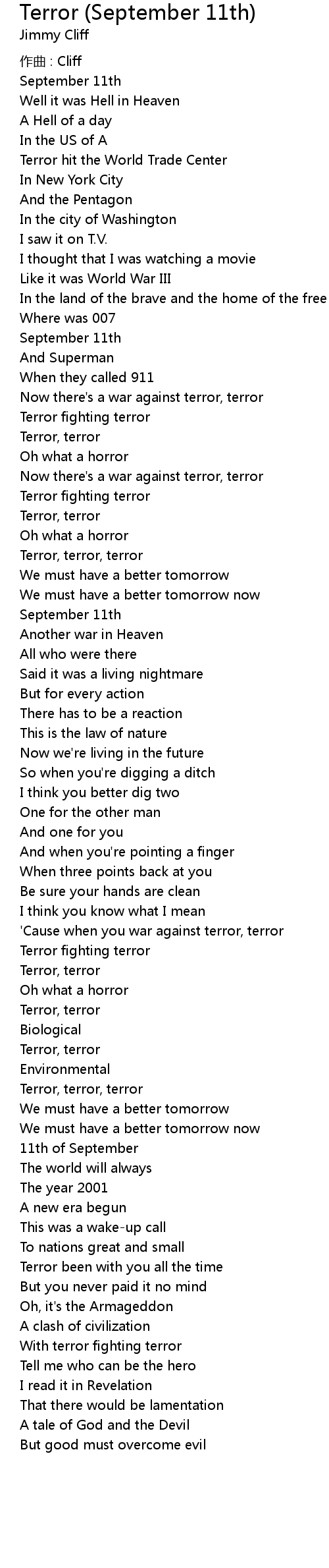 | 歌曲 | Terror (September 11th) |