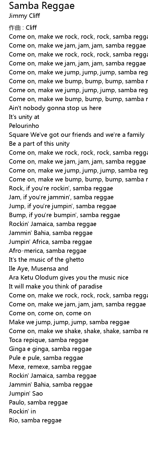 | Come on, make we jam, jam, jam, samba reggae | |