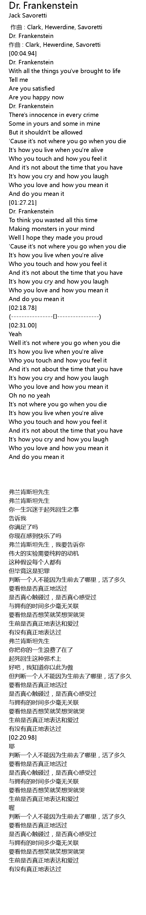 | [00:36.69] | 弗兰肯斯坦先生,我要告诉你 |