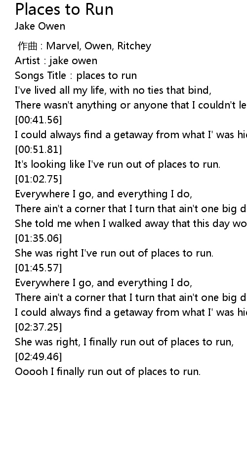 | [01:37.06] | She was right I' ve run out of places to run. |