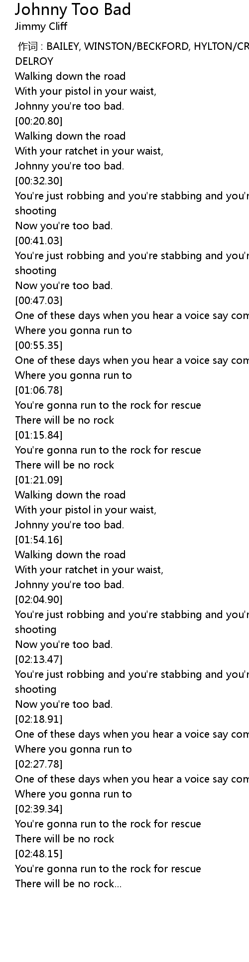 | 歌曲 | Johnny Too Bad |