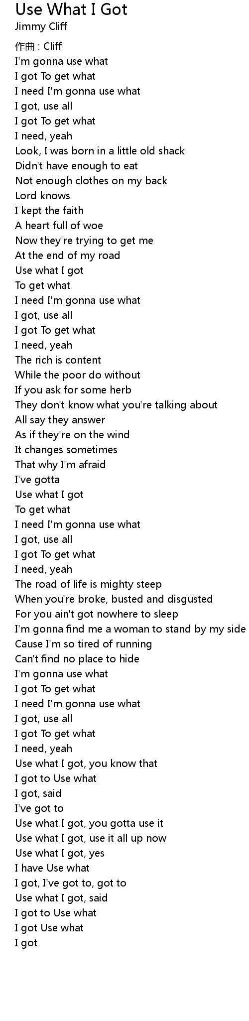| 歌曲 | Use What I Got |