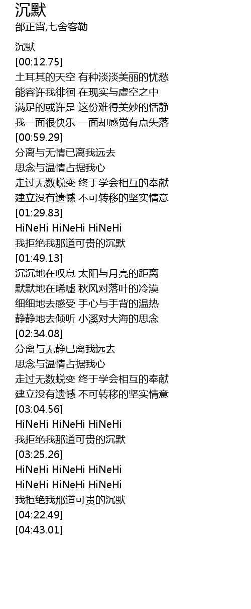 | [03:50.01] | HiNeHi HiNeHi HiNeHi |