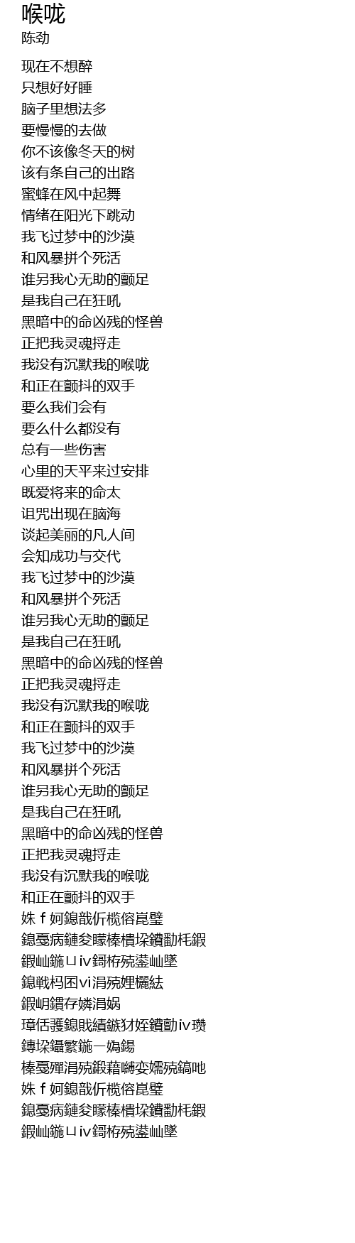 | [02:38.01] | 我没有沉默我的喉咙 |