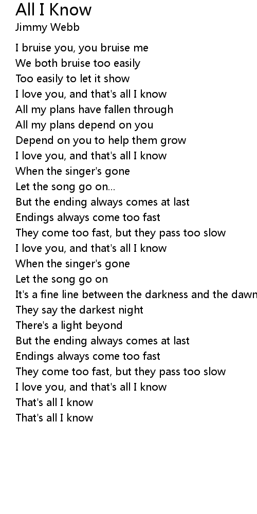 All I Know 歌词