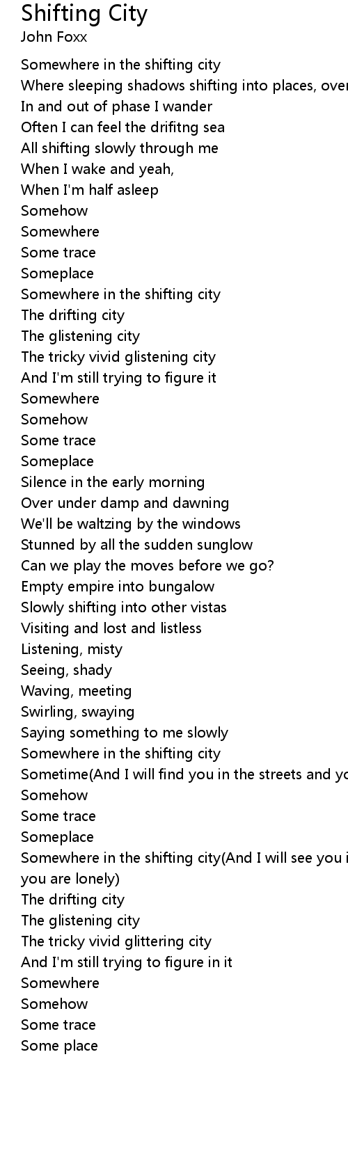 Somewhere in the shifting city(And I will see you in the streets when you are lonely) |