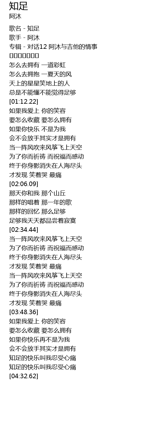 | [04:15.53] | 知足的快乐叫我忍受心痛 |