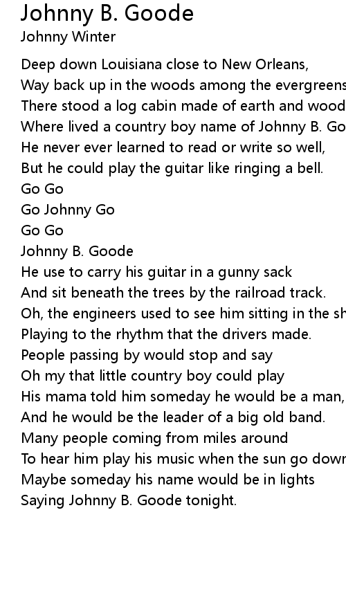 Where lived a country boy name of Johnny B. Goode... |