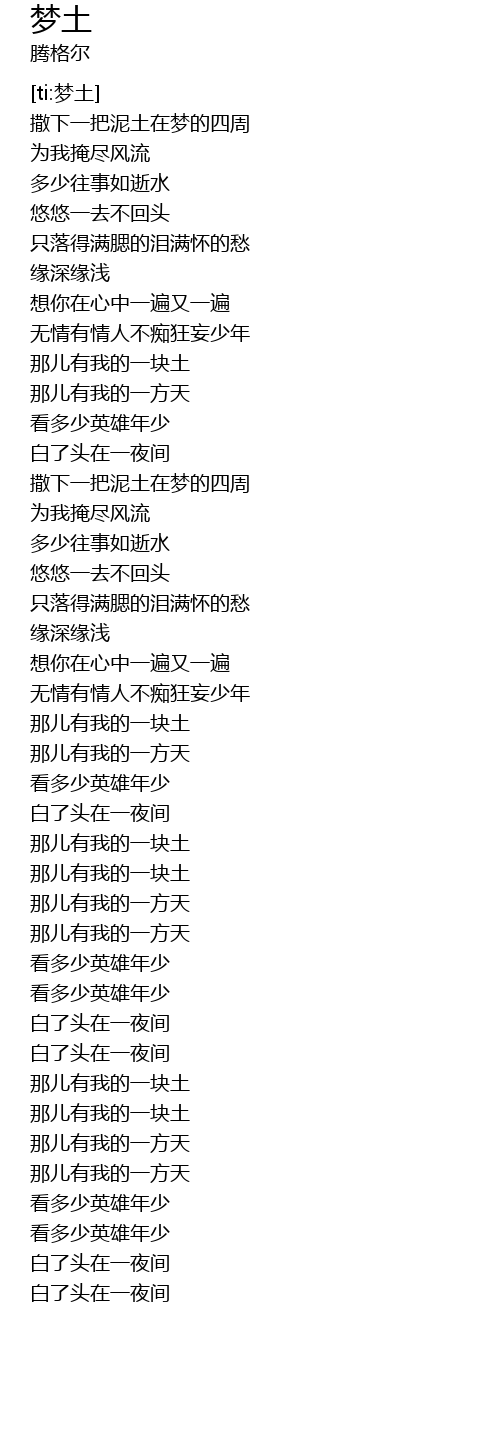 | [03:03.568] | nà ér yǒu wǒ de yí kuài tǔ |