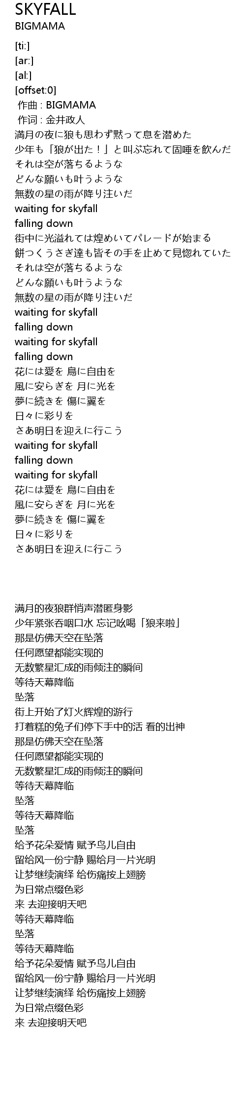 | [00:39.43] | 那是仿佛天空在坠落 |