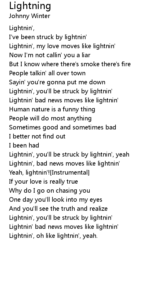Lightnin', you'll be struck by lightnin'