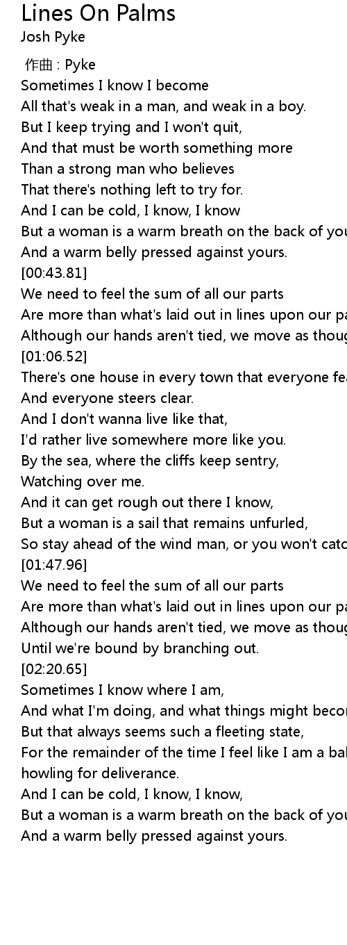 | [00:50.47] | Are more than what's laid out in lines upon our palms. |