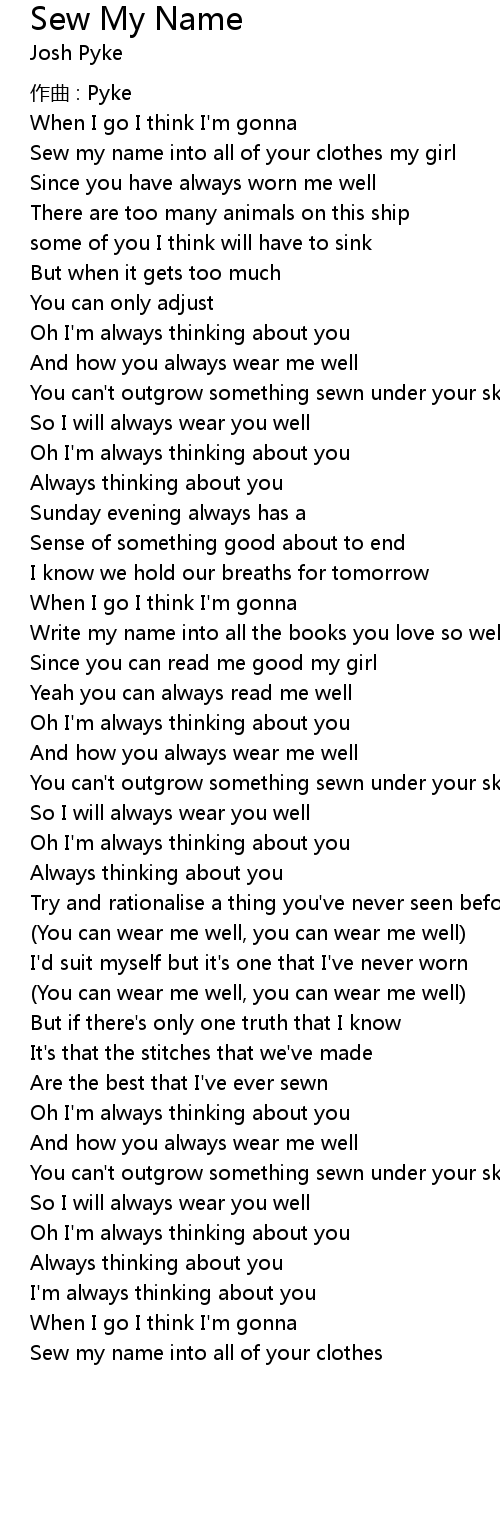 | 歌曲 | Sew My Name |