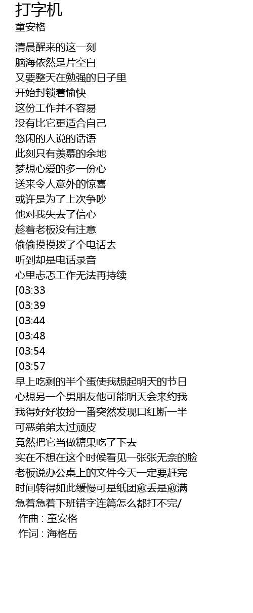 | [03:20] | 时间转得如此缓慢可是纸团愈丢是愈满 |