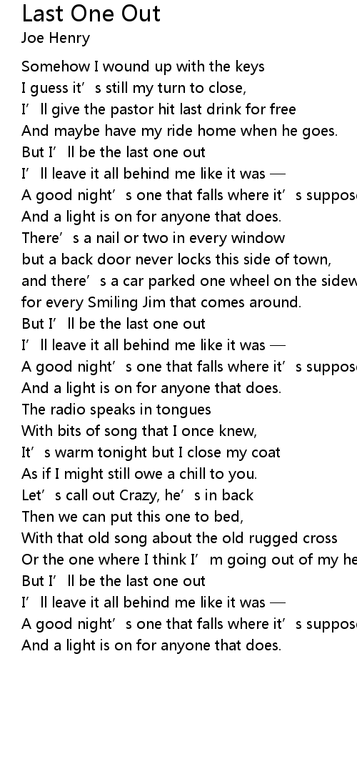 | But I' ll be the last one out | |