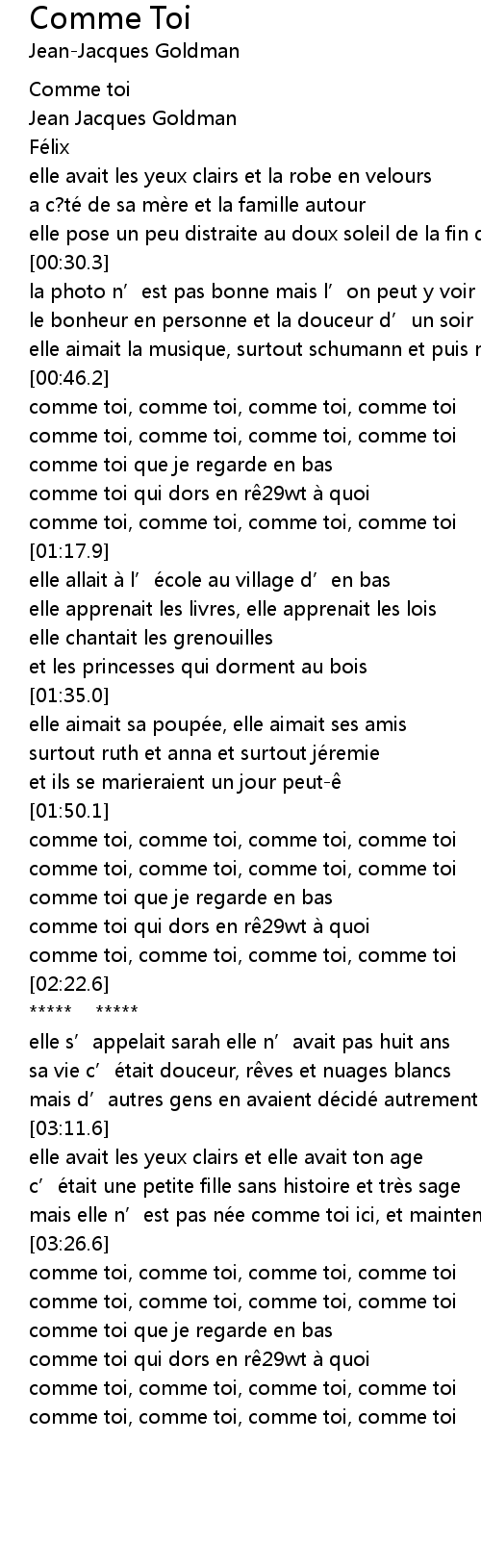 | [00:47.4] | comme toi, comme toi, comme toi, comme toi |