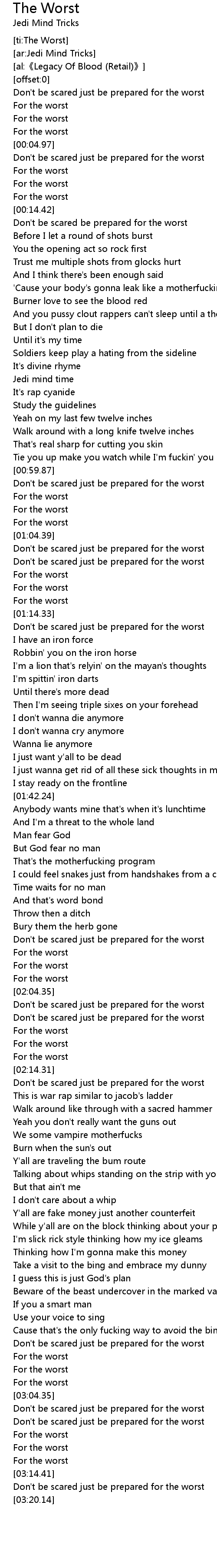| [03:00.43] | Don' t be scared just be prepared for the worst |