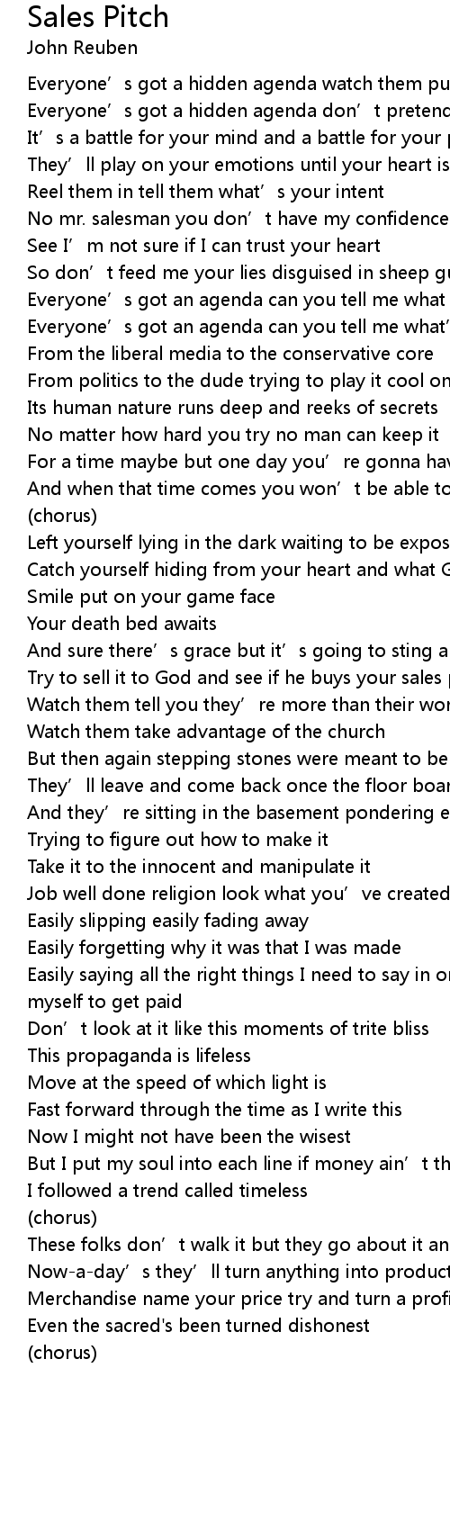 | Everyone' s got a hidden agenda watch them push it on you | |