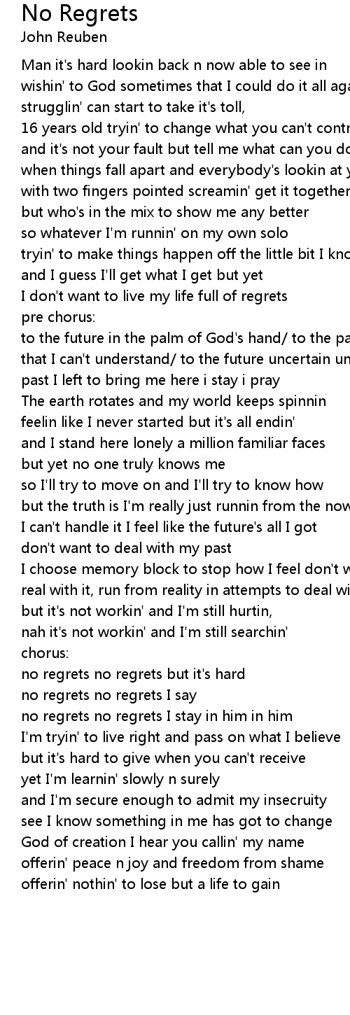 no regrets no regrets I stay in him in him |
