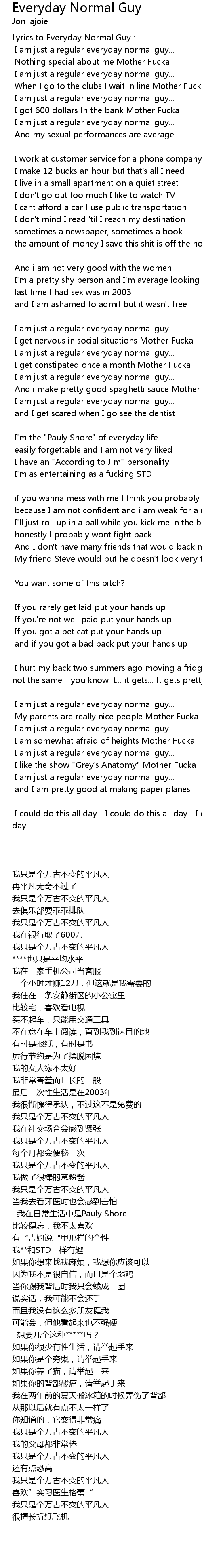 Lyrics to Everyday Normal Guy : |