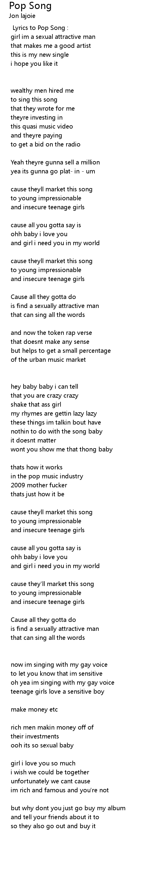 Lyrics to Pop Song : |