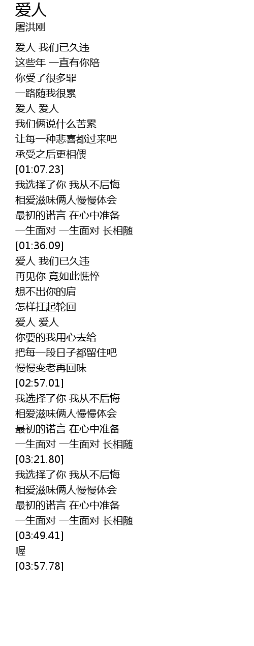 | [00:41.11] | 爱人 爱人 |