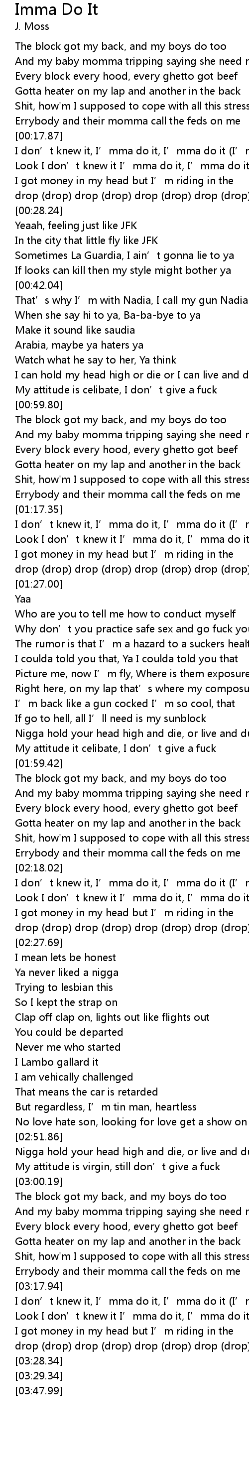 | [03:20.95] | Look I don’t knew it I’mma do it, I’mma do it (I’mma do it) |