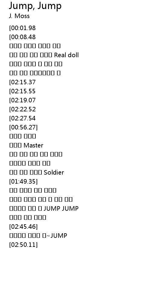 | [02:37.79][02:22.52][01:40.99][00:48.19] | 망가져봐 소리쳐 JUMP JUMP |