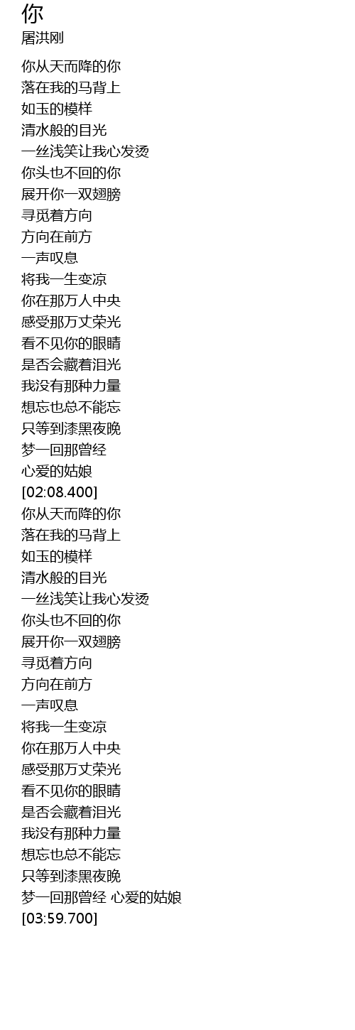 | [03:53.320] | 梦一回那曾经 心爱的姑娘 |