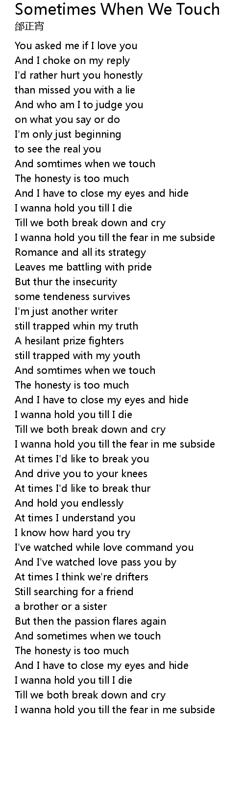 | [02:18.53] | I wanna hold you till the fear in me subside |