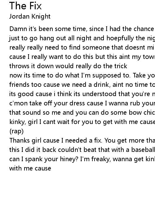 now its time to do what I'm supposed to. Take you to the bar and bring your friends too cause we need a drink, aint no time to think we gotta get it while its good cause i think its understood that you're my F-I-X and that includes c'mon take off your dress cause I wanna rub your Night vision camcorder how's that sound so me and you can do some bow chica bow bow I'm freaky wanna get kinky, girl I cant wait for you to get with me cause |