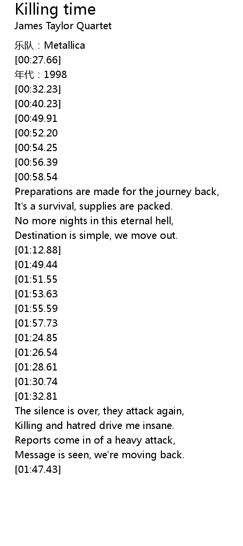 | [02:46.31][01:49.44][01:14.74] | Killing time - You left from the line |