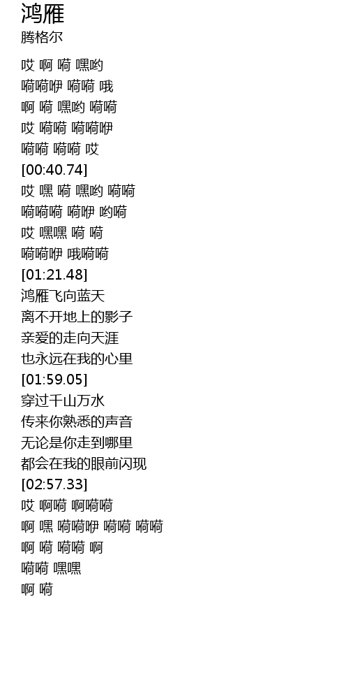 | [03:01.75] | 哎 啊嗬 啊嗬嗬 |